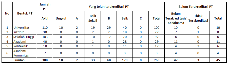 Jumlah dan Akreditasi Perguruan Tinggi Swasta